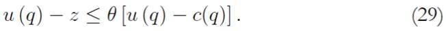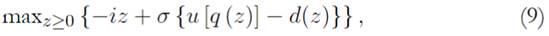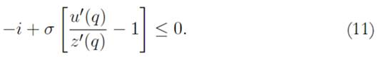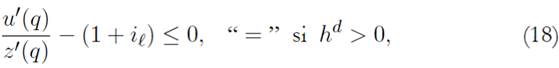 donde la forma específica de z(q) dependerá del protocolo de negociación asumido en el MD. La función objetivo del comprador es estrictamente cóncava y, por tanto, una solución existe. La condición de primer orden (necesaria y suficiente) del problema del comprador es: