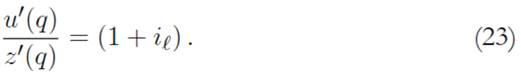 donde la forma específica de z(q) dependerá del protocolo de negociación que sea asumido. Según la ecuación (18), el comprador demandará préstamos hasta que el beneficio de pedir prestado una unidad de dinero sea igual a su costo.