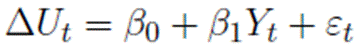 1 = Factor relating changes in unemployment to changes in output, which reflects the dynamic relationship between changes in unemployment and long-run economic growth; Y