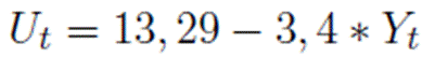 According to Okun’s (1962) literal interpretation, for each percentage point of growth in national product (GDP), the variation in unemployment would be -0.3 percentage points and, analogously, a one percentage point increase in the unemployment rate reduces national product by 3.4 percentage points. In other words, if GDP increases by 1%, unemployment would decrease by 0.3%, and if unemployment increases by 1%, then GDP would decrease by 3.4%.