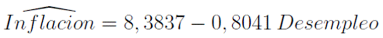 Alternatively, considering that β 1 = −0.8041, then 1/ β 1 = 1/−0.8041 = −1.24. For each percentage point of growth in the unemployment rate, the variation in inflation would be −1.24 percentage points and, analogously, a one percentage point increase in the unemployment rate would reduce inflation by 0.8041 percentage points. It is worth noting that, although the effects on inflation and unemployment rates appear to be large, they are actually small. It should be remembered that the values are expressed in terms of the growth rate of the respective inflation and unemployment rates as calculated by DANE.