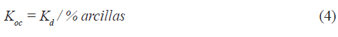 De manera análoga se puede plantear el K acilla como la relación entre K d y el porcentaje de arcillas del suelo (4):
