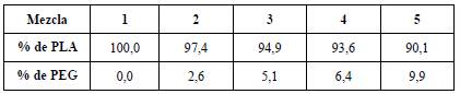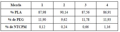 Preparación de las mezclas PLA + PEG y PLA + PEG + NTCPM