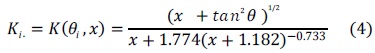 En donde: x es el parámetro de distribución elipsoidal de los ángulos foliares; θ es el ángulo cenital de un rayo directo.