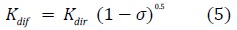 Los coeficientes de extinción (Ki.) teóricos por genotipo, se determinaron usando la metodología propuesta por Campbell (1989), la cual lo deriva del parámetro x y del ángulo cenital mediante la ecuación 4, que asume a todos los elementos del dosel completamente oscuros y aleatoriamente distribuidos. Al variar el ángulo cenital (0 a 90°) en la ecuación 4 y promediar los valores Ki., se obtiene el coeficiente de extinción para la radiación directa (Kdir) (Castillo et al. 1996). El coeficiente de extinción para la radiación difusa extinción (Kdif) se calculó con la ecuación 5. En el presente trabajo, análisis, cálculos y gráficas, se realizaron con el software Microsoft Office Professional 2010 .