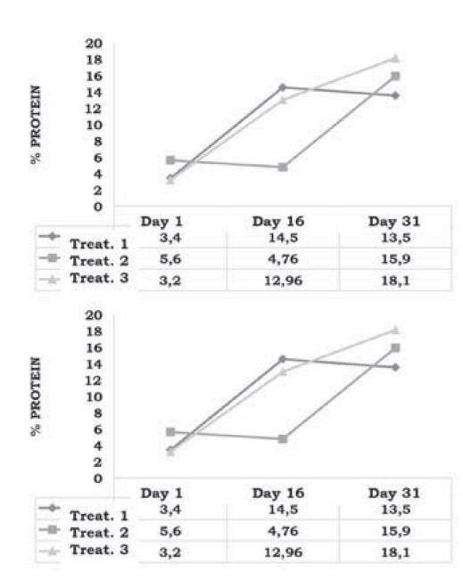 Subsequently, additives incorporated into the micro silos contributed to obtain a higher protein content in treatments. According to Valeriano, Pinto, Ávila, Evangelista, Tavares & Schwan (2009), "this increase during silage occurs mainly as a result of the use of soluble carbohydrates, causing a percentage increase in raw protein content".