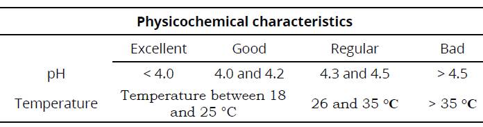 To evaluate organoleptic characteristics (Table 4), the Vallejo methodology was used (1995) cited by Aguilar, (2012); in this methodology, indicators were used; a numerical value was given to each indicator (color, smell and texture), obtaining at the end, the sum of organoleptic indicators (OI). The evaluation was carried out on the 31st fermentation day.