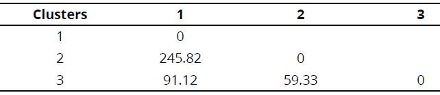 A cluster analysis was performed for the group of industrial tomato varieties with similar characteristics. Distances between each pair of observations were sized using the Gower methodology, which allows working with different kind of variables and standardizing them according to their rank (Bortz, 2010). The cluster analysis was assessed by the Wald minimum variance methodology, pseudo t 2 test and the distance matrix in order to choose the appropriate number of variables. In addition, a canonical discriminant analysis was executed to find the responsible variables of group formation. Distance between combination pairs was computed in order to observe similarities using the Wilks Lambda test, in order to address the equality hypothesis between clusters. These analyses were carried out with the SPSS program version 21.0 for Windows.