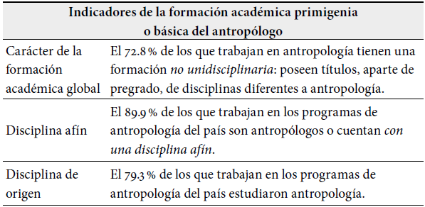 Tabla 4 Indicadores de la formación académica primigenia o básica del antropólogo