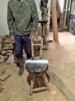 Otro proyecto analizado fue el de ebanistería y carpintería. Ruperto [nombre ficticio], nos dio un recorrido por su taller y nos mostró en detalle sus herramientas, materias primas y productos (Figura 13). Nos comentó que en la cárcel aprendió de carpintería y ebanisteria. Nos mostró una máquina "hechiza" que tenía guardada en el fondo de su taller, explicó que fue construida en la cárcel y desde entonces lo acompana. Muchas de las máquinas del taller eran nuevas y donadas por un programa de la Presidencia de la República. Ruperto planteaba que "la carpintería es un trabajo muy duro y que nadie se le medía a seguir ayudándole en el taller a pesar de que le ha salido trabajo y encargos de muebles". Debido a la falta de un ayudante, terminó trayendo a su hermano y a su mamá que vivían en otra región del país. Un obstáculo para el l avance de proyectos es que se ha presupuesto que las personas pueden trabajar "asociadas". Sin embargo, como plantean Munive y Jakobsen (2012), algunas políticas de reincorporación se disenan sobre supuestos que no funcionan en la realidad.
