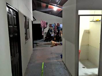 En el ETCR se construyeron casas prefabricadas con materiales como drywall (Figura 4). En las viviendas y lugares comunales habitan cerca de 120 firmantes y sus familias. En el transcurso de ano y medio, en dos visitas realizadas entre 2018 y 2019, se observaron cambios importantes en la construcción de nuevas casas; nuevos cultivos, sobre todo de café y yuca; y nuevas zonas comunes -por ejemplo, dos galleras, una fija y otra portátil-. La disposición espacial del ETCR El Oso incluye varias filas de casas prefabricadas. En conversaciones con los firmantes, uno resaltaba que "esos muros de drywall son del Estado y en cualquier momento nos los vienen a quitar" (Entrevista 9). Esta visión muestra una percepción inestable de los firmantes sobre el apoyo recibido del Estado. Sin embargo, en una visita de campo en 2022 algunos funcionarios públicos comentaban que "muchos firmantes de la paz han comenzado a reemplazar esos materiales temporales (drywall) por ladrillos y cemento" (Entrevista 14).