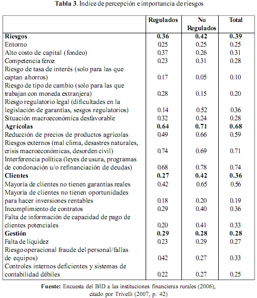 La banca, frente al riesgo moral, expresa claramente su aversión a cualquier fórmula tras la cual pueda franquearse la debilidad en el acceso al crédito y las finanzas por parte del sector agropecuario. En este sentido, la búsqueda de mecanismos que superen cualquier asomo de dilación se convierte en una constante para todos aquellos que consideren que el propósito de la banca debe estar dirigido a la articulación de los recursos que posee con la actividad productiva real, y que cualquier asidero fuera de esto, pone a la banca en el papel de reproductora de capital financiero pero nunca de capital productivo. (Ver Tabla 3).