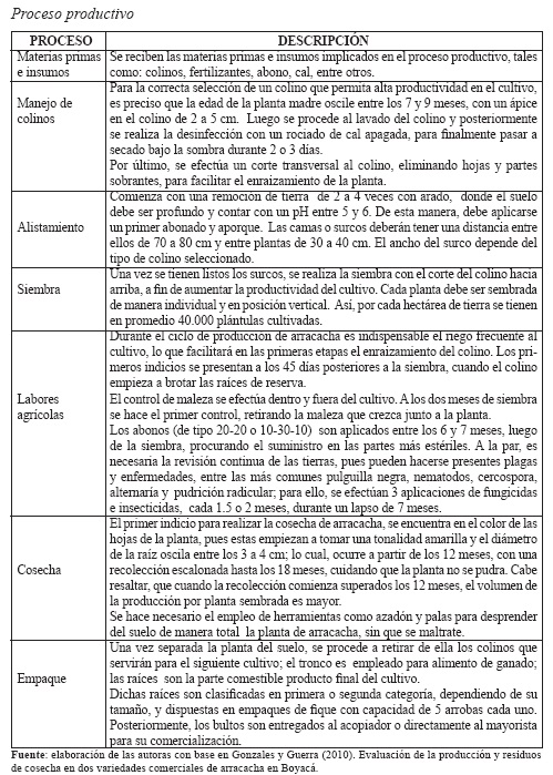 No obstante, los productores buscan otras alternativas como la agroindustria para apoyar la cadena productiva de la arracacha y en algunos casos ven que la competencia fuerte "es con otros municipios, no con los productores de Boyacá; ya que se busca fortalecer al municipio y colaborarnos mutuamente, a través de la asociatividad" (E. Quintero, comunicación personal. 8 de septiembre de 2014).