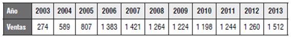Tabla 12 Ventas de Frávega, 2003-2013. Millones de pesos de 2003