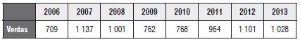 Tabla 13 Ventas de Red Megatone, 2006-2013. Millones de pesos de 2003