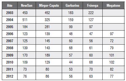 Fuente: elaboración propia con base en Revista Mercado (2003-2012)