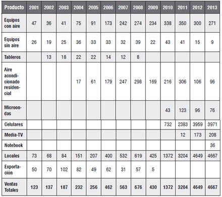 No obstante, la diversificación que resultará fundamental para la empresa es aquella relacionada con la electrónica de consumo doméstico, que comienza en el año 2004 con la expansión en torno a la refrigeración doméstica10. En este caso, el grupo avanzó hacia un producto fuertemente relacionado con su producción principal. Siguiendo esta misma lógica de diversificación hacia la electrónica de consumo, a fines del 2008 el grupo adquirió la firma "Industria Austral de Tecnología S.A." (Iatec S.A.), empresa alcanzada con beneficio de la promoción industrial de Tierra del Fuego para la producción de distintos productos electrónicos, tales como televisores, hornos microonda, celulares, equipos de sonido, entre otros.