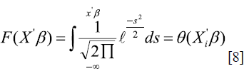 Since the model only takes two values, one and zero, the conditional probability is also the conditional expectation (equation 4). The functionality of the model can be conditioned so that the values do not exceed the interval between [0,1]. It can be assumed that α t is composed of a row vector of explanatory variables.
