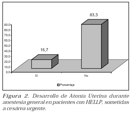 Las técnicas tradicionales bajo anestesia general, que implican la utilización de agentes halogenados, se pueden asociar al desarrollo de atonía uterina(7,8). En nuestro estudio solamente una paciente presentó atonía uterina y fue la misma que presentó un tiempo de incisión uterina nacimiento e incisión piel- nacimiento prolongados, factores que en la literatura se han asociado claramente con el desarrollo de esta complicación.