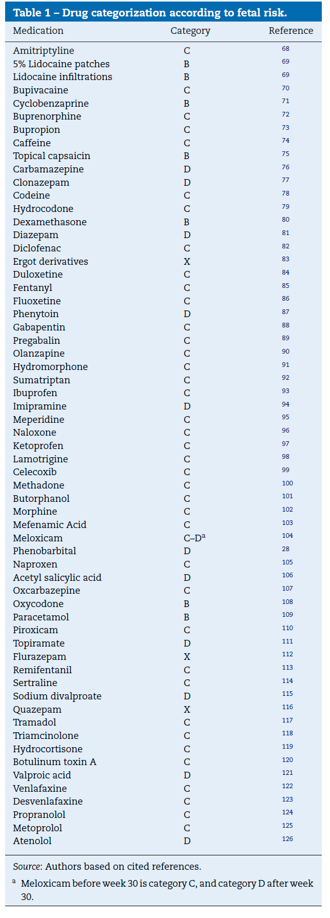 Conclusion: The comprehensive approach to the management of conditions that may produce pain during pregnancy requires the use of medications that are not always 100% safe. Treatment must be inter-disciplinary and humanized, and consider the implications for the mother and fetus, optimizing, whenever possible, non-pharmacological therapeutic options.