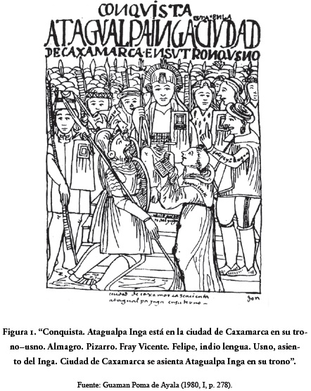 10 Mientras que, en algunas descripciones, la discusión cumbre se desarrolla exclusivamente entre Atahuallpa y fray Vicente Valverde, en otras no queda claro si Francisco Pizarro, Diego de Almagro y otros españoles participaron en ella; según todas las crónicas, sin embargo, está intermediada por Felipillo. La relación de Felipillo con Sancta, la coya, la "mujer legítima" de Atahuallpa, es otro episodio ya arriba mencionado y rodeado de misterios; sobre este, ya se ofrecieron unas interpretaciones (véase Plötz, 2012, p. 211 y ss.), pero que aquí, por no ser el tema, solo se ha mencionado de paso.