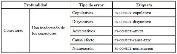 Figura 2 Etiqueta para el uso de la taxonomía en errores de transferencia directa de estructuras sintácticas