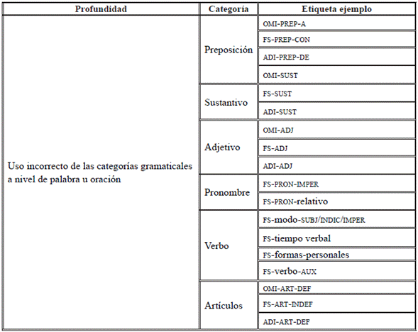 Figura 1 Etiqueta para el uso de la taxonomía en errores de transferencia directa de categorías gramaticales