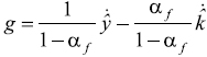 la tasa de aumento del capital por trabajador (k) y af la elasticidad del producto al capital físico. Se tomaron los datos estimados en este trabajo de los crecimientos anuales del producto por trabajador y el del capital por trabajador y se supuso que la elasticidad del producto al capital es 0,429.