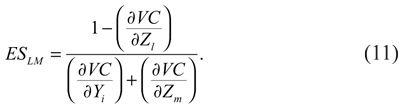 donde la participación de los costos de un factor se expresa como la derivada del costo con respecto a ese factor. Para el modelo 2, la ecuación de participación de costos se expresa como: