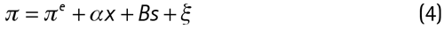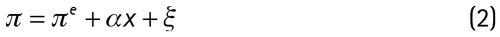 En la función objetivo se supone que la meta de inflación del BC es cero. La curva de Phillips relaciona la inflación (π) con las expectativas de inflación (πe), el estado de la economía, medido por la brecha del producto (x), y un choque inflacionario (ξ) que captura otros factores que pueden afectar la inflación. Las condiciones de primer orden son: