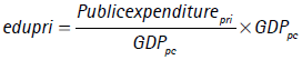 The variables were a construction from the original variables "Public expenditure per student in primary (%GDP per capita)" as follows: