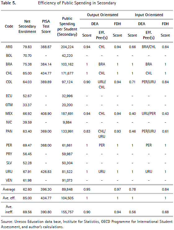 Nevertheless, the most important conclusion is that the process of improving educational outputs should be focused on strengthening the educational systems and uses the resources efficiently to reach the necessary educational level for the development of the region. In other words, the main challenge for Latin America is not just how to spend more resources in education, but also how to spend them better.