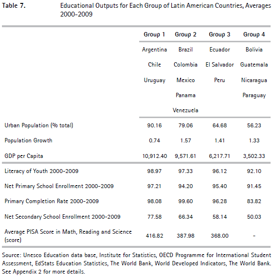 26 The name of the groups and the methodology of their clasification are based in Tadesco and Lopez (2002). Nevertheless, these authors do not use this approach to evaluate efficiency and just do it to have a general view of the educational situation in Latin America.