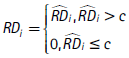 Donde α0 es un término constante, β0, α1 y α2 son coeficientes a ser estimados, uio es el componente de error y c es el umbral donde la intensidad de gasto en I+D por trabajador en logaritmos (