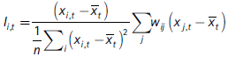 j,t representan los valores del IDH en el municipio i y j en el año t, respectivamente, expresado en términos de desviaciones respecto a su media