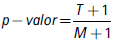 Donde T es el número de valores en la distribución de referencia que fueron tan extremos como el estadístico observado, y M es el número de permutaciones llevadas a cabo. Un valor pequeño de este pseudovalor es una indicación de un patrón extremo de agrupamiento en comparación con lo que se esperaría bajo la hipótesis nula (la distribución del IDH se produce de forma aleatoria en el espacio).