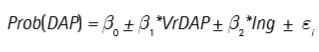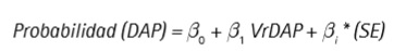 Donde, β1 es el parámetro del valor de la DAP y SE es el vector de características socioeconómicas. Se espera que el signo de β1 sea negativo, indicando que a mayor valor de la DAP la probabilidad de que el individuo tenga una DAP disminuye.
