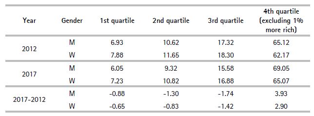Table 1. Distribution and evolution of wealth by gender and quartile