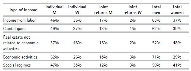 Table 2. Reported revenues by men and women by type of return (2017)