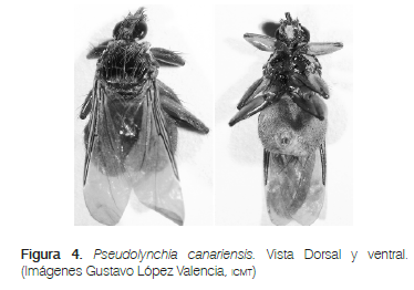 Pseudolynchia canariensis, es una mosca de climas tropicales, de alta distribución geográfica y son de rápida reproducción, la mayoría de los animales del estudio (95%) presentaban una o más moscas, a diferencia de estudios anteriores que reportan el 60% [24]. Aunque en el estudio no se reportó el número de moscas por paloma, en las aves evaluadas se encontraron hasta siete individuos, cuando la revisión de algunas bibliografías mencionan el hallazgo sólo de una a dos moscas por animal, lo cual indica un alto parasitismo en estas aves [8].