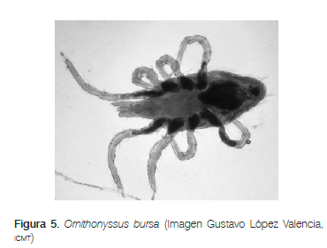 En los nidos evaluados se determinó la presencia de Ornithonyssus bursa (Figura 5).