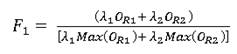 En donde λ 1 y 𝜆 2 son los pesos ponderados de OR1 y de OR2, calculados mediante métodos de análisis multicriterio (en este caso, se usa el proceso jerárquico analítico AHP de Saaty, referido por Gass y Fu 15. Siendo OR2 más importante que OR1, los pesos calculados con el algoritmo AHP fueron 𝜆 1 = 0.83 y 𝜆 2 = 0,17. La función 𝑀𝑎𝑥 𝑂 𝑅𝑗 , calcula el valor máximo de ORj tomando en cada celda una vecindad rectangular de 3×3 celdas mediante funciones de estadística de bloque.