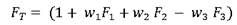 Con los factores F1, F2 y F3 se calcula, mediante la Ecuación 3, un factor total (FT) que incluye la proximidad combinada a vías, usos industriales y zonas verdes; siendo wi los coeficientes de ponderación de los factores (para el caso que presentamos en este artículo w1=1, w2=0,2 y w3=0,2).