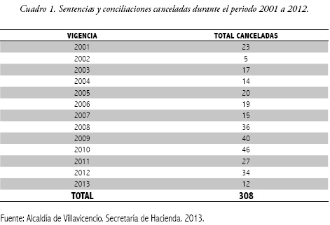 Application de l'action en répétition dans la municipalité de Villavicencio pour la période 2001 – 2012