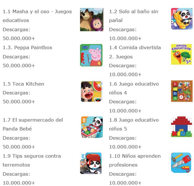 Tercera selección de 10 apps educativas dirigidas al público infantil en la plataforma 42matters.