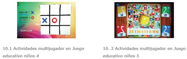 En general las apps analizadas no favorecen la interacción social y están pensadas para el uso individual. Solo encontramos dos actividades multijugador en Juego educativo niños 4 y Juego educativo niños 5 (figura 10). En las de simulación, el usuario interactúa con los personajes.