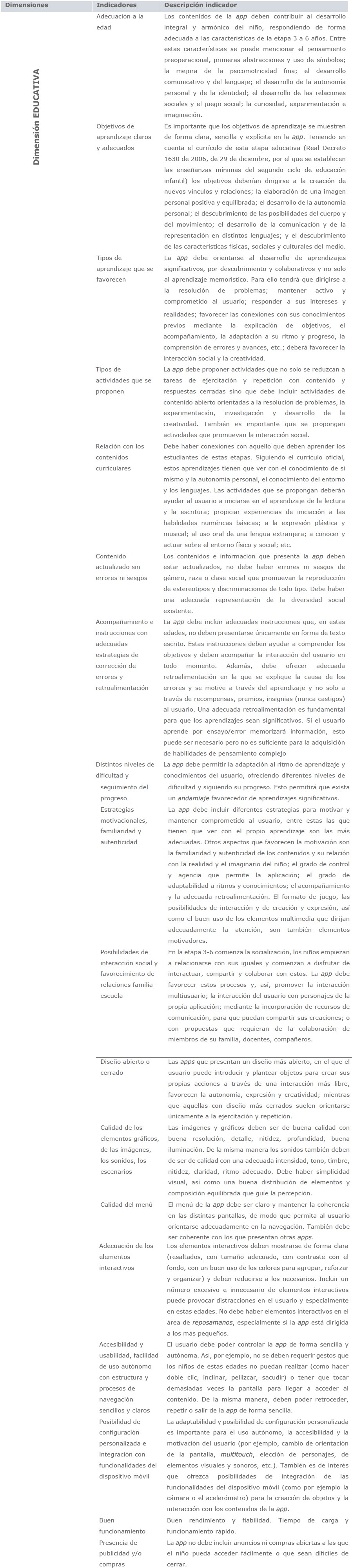 En los siguientes apartados se exponen los aspectos que, según distintos estudios, determinarían la calidad educativa de las aplicaciones dirigidas al público infantil.