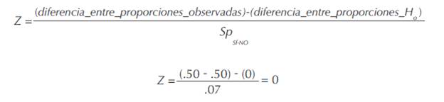 H o = P Sl ≤ P NO , la proporción de SI es menor o igual que la proporción de NO.