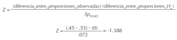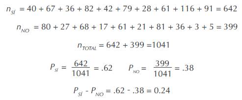 H o = P SÍ ≤ P NO , la proporción de SÍ es menor o igual que la proporción de NO.