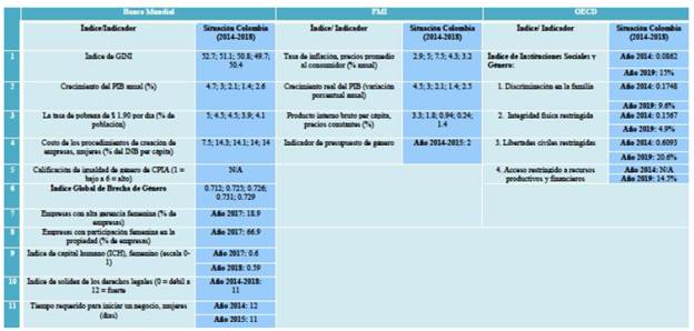 Tabla 1 Cuadro de índices e indicadores de organismos de desarrollo económico para Colombia, 2014-2018